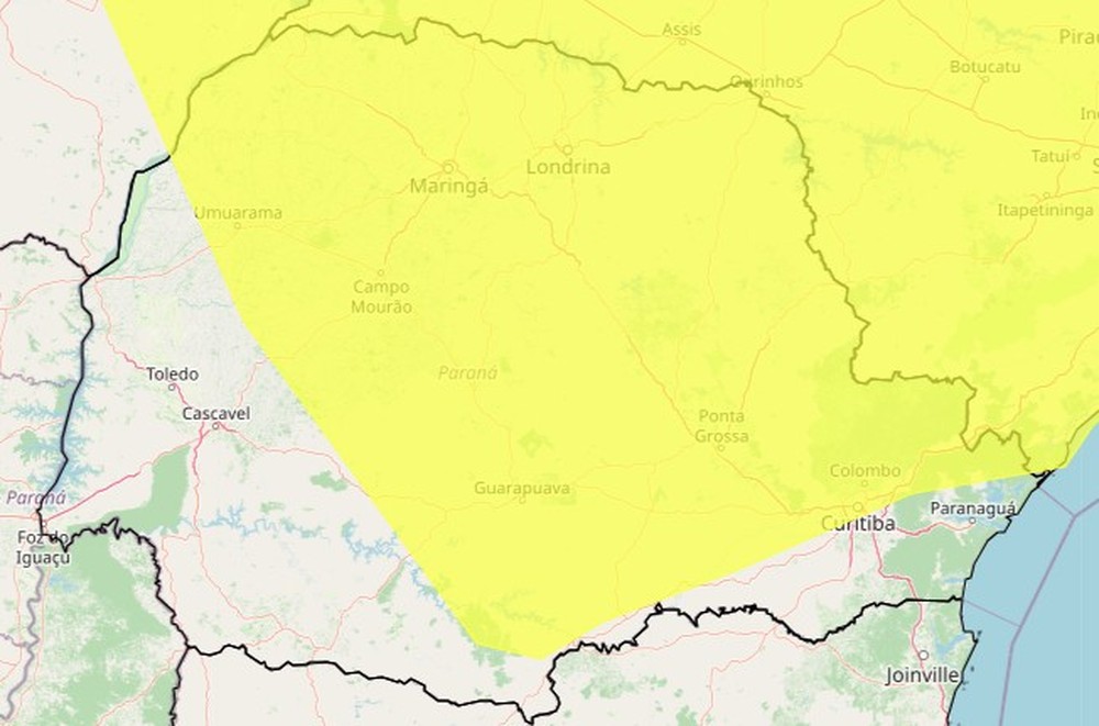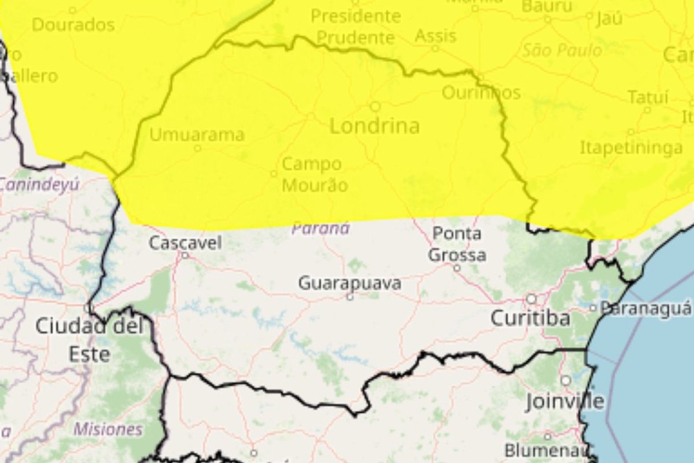 Mais da metade do Paraná está sob alerta de tempestade do Inmet; veja cidades