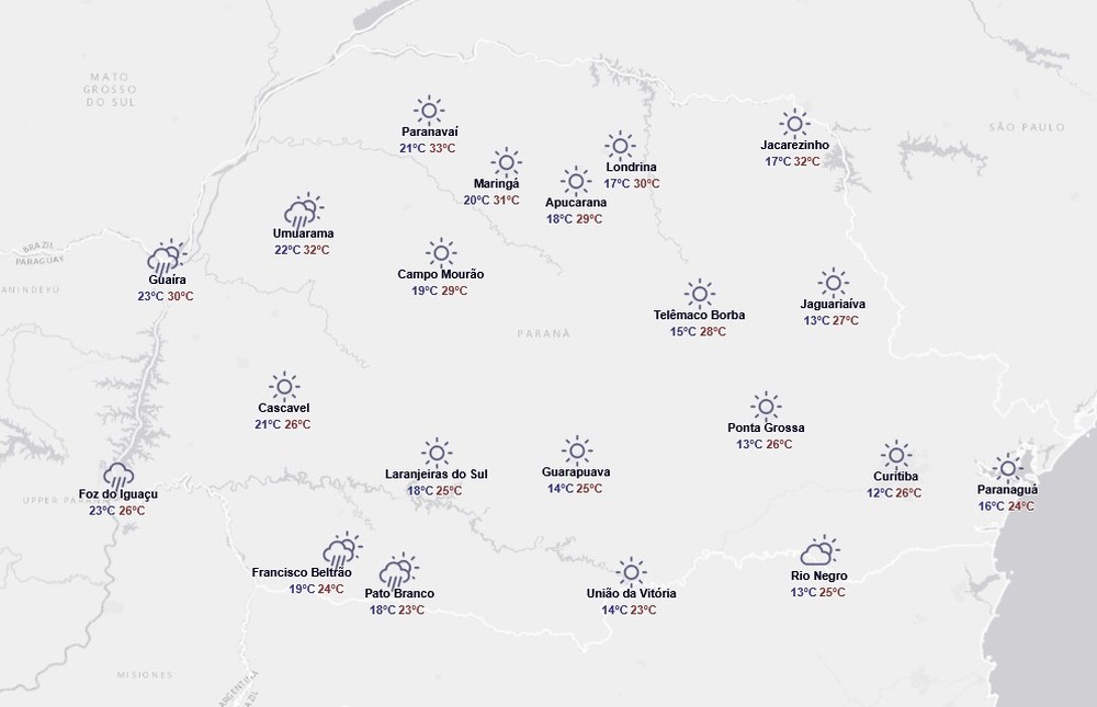 Paraná terá fim de semana quente antes da chegada de uma nova frente fria, prevê Simepar