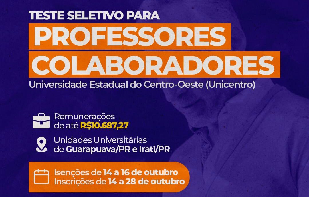 Unicentro abre inscrições para teste seletivo de professores colaboradores