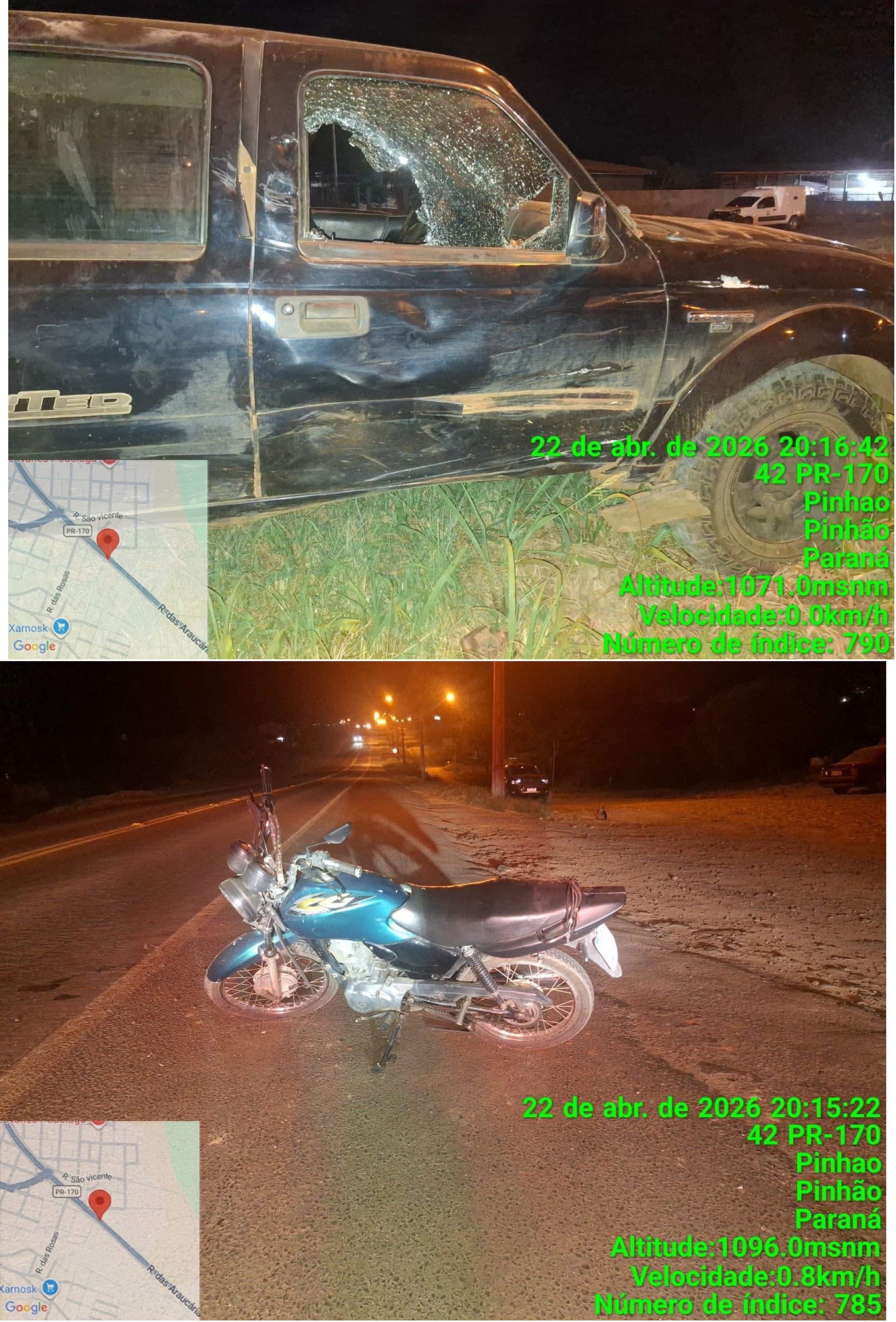 Motociclista fica ferido em colisão transversal na PR-170 em Pinhão